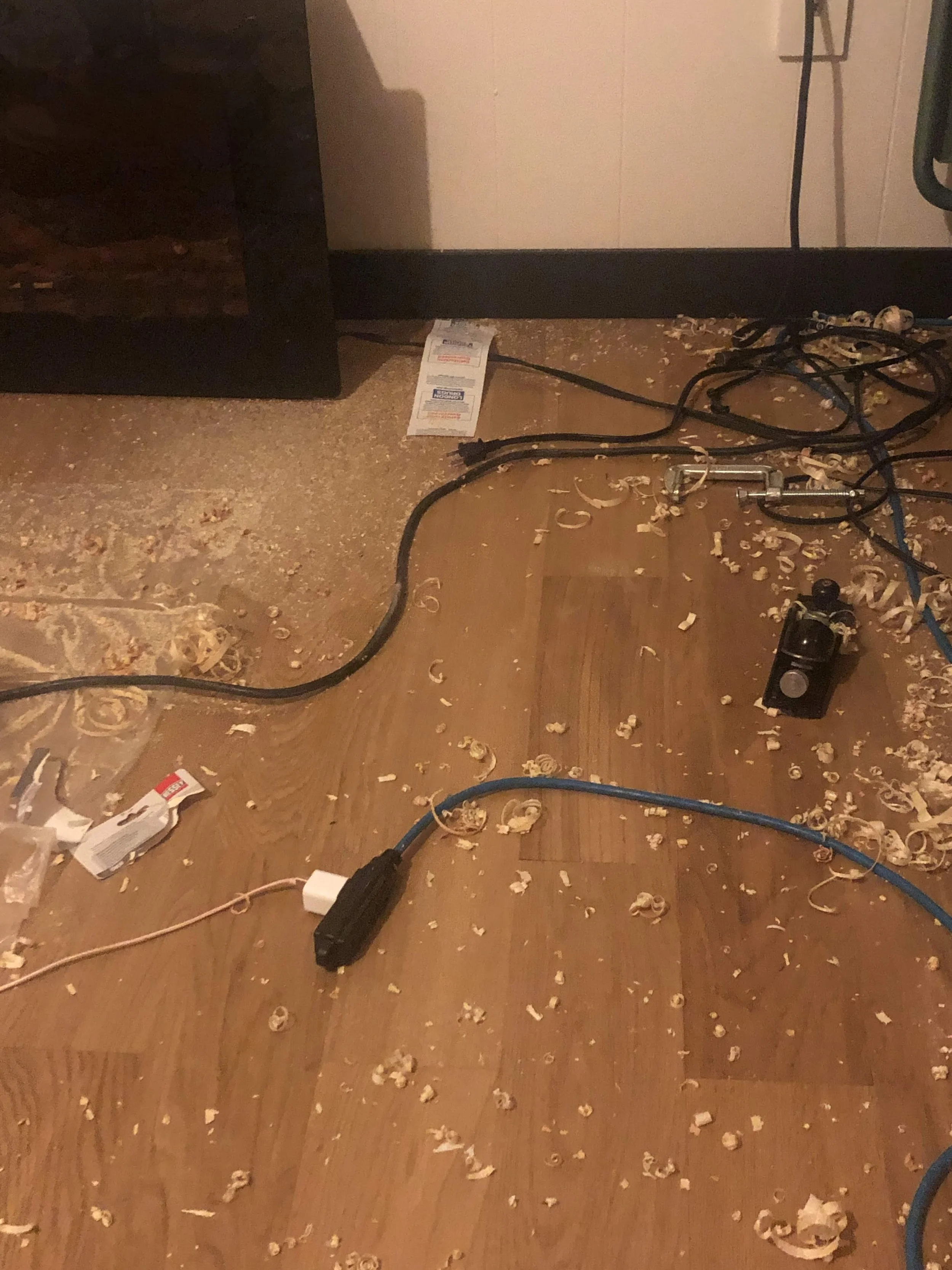 I tried to fix our Mitre Saw to start making the frames for the paintings but after finding a manual online for it I found out that it’s missing parts. I’ll get a handsaw and box to cut the wood instead. Maybe today. I want to paint a big picture on some floral fabric I got.