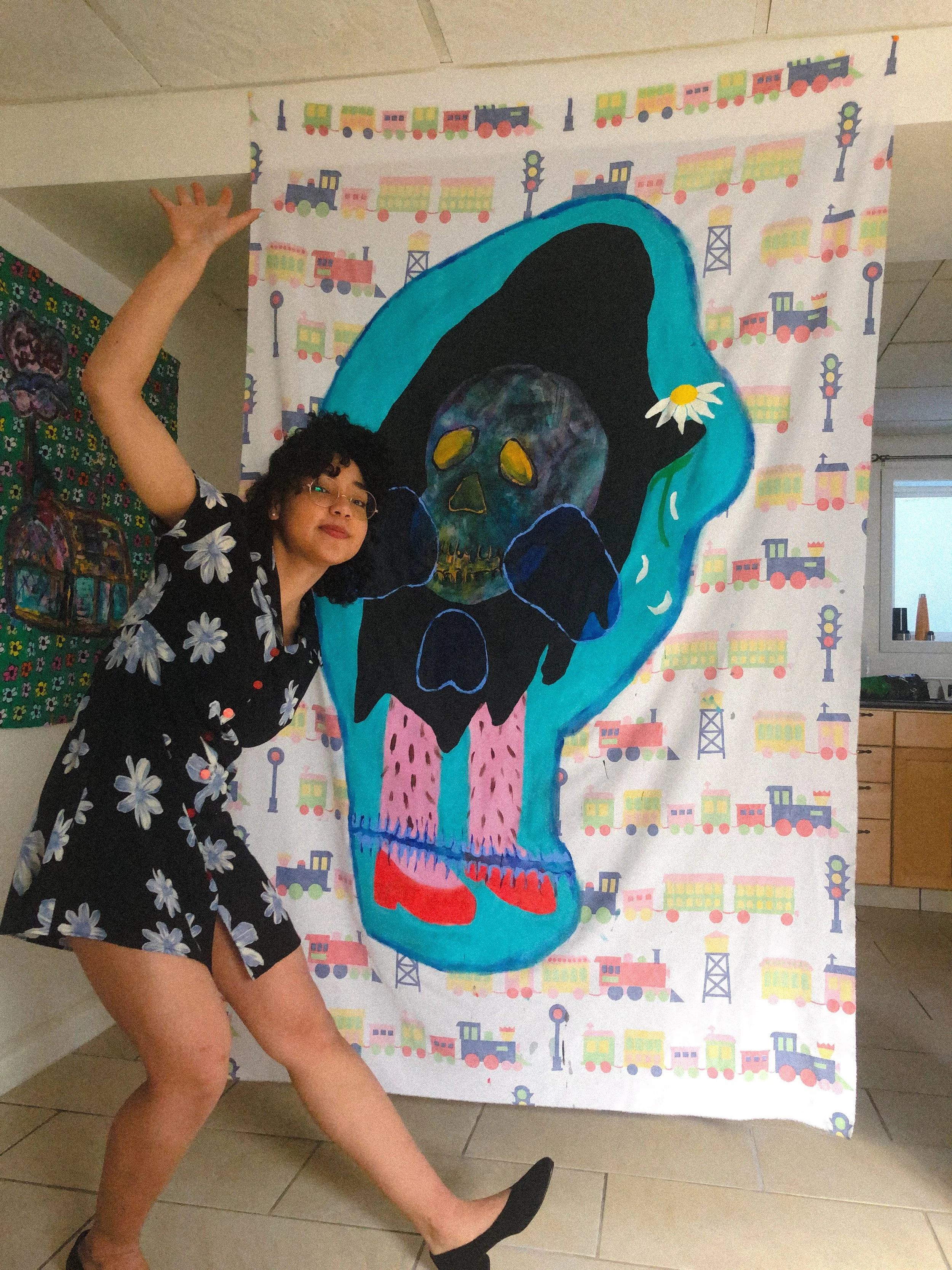 Yesterday was remarkable. I took the floral fabric I bought @ Fabricland and painted “Banana Phone.” It is wonderful. I was browsing John Mckie’s Instagram this morning and I found out that he doesn't have an art degree but he's successful and his work is in a collection and it's amazing! I messaged him asking him if he does art full-time and if he has any advice he could share. Yesterday after I painted “Banana Phone” I felt so overjoyed I couldn't do anything..I think making one painting a day is the most I can do. Creative energy spent on two paintings causes the second painting to fail. It’s like your mind is filled with connections and colours after you sleep and when you wake up it’s ready. You need to do things in the day and experience and then your first painting of the day is a reflection of this experience. One painting a day. I’m on the 182 headed to Londonderry Mall now. Today the plan is to go to Home Depot and get some wood to stretch my painting on. I wonder how Dad is doing..