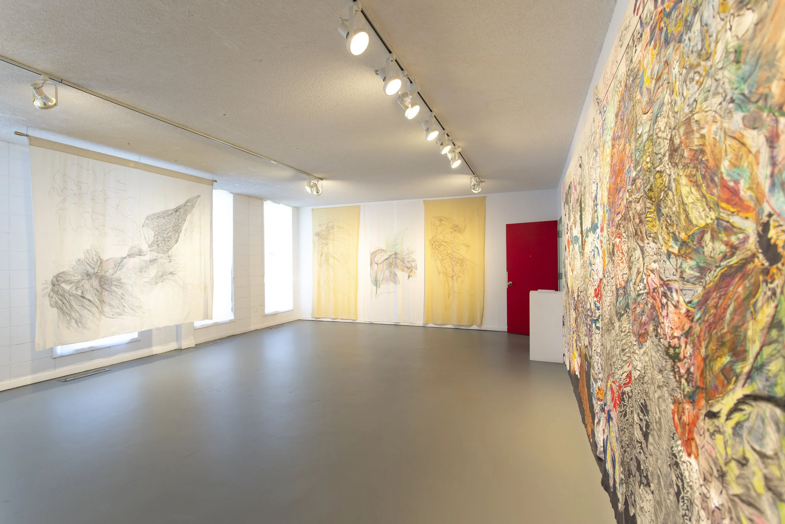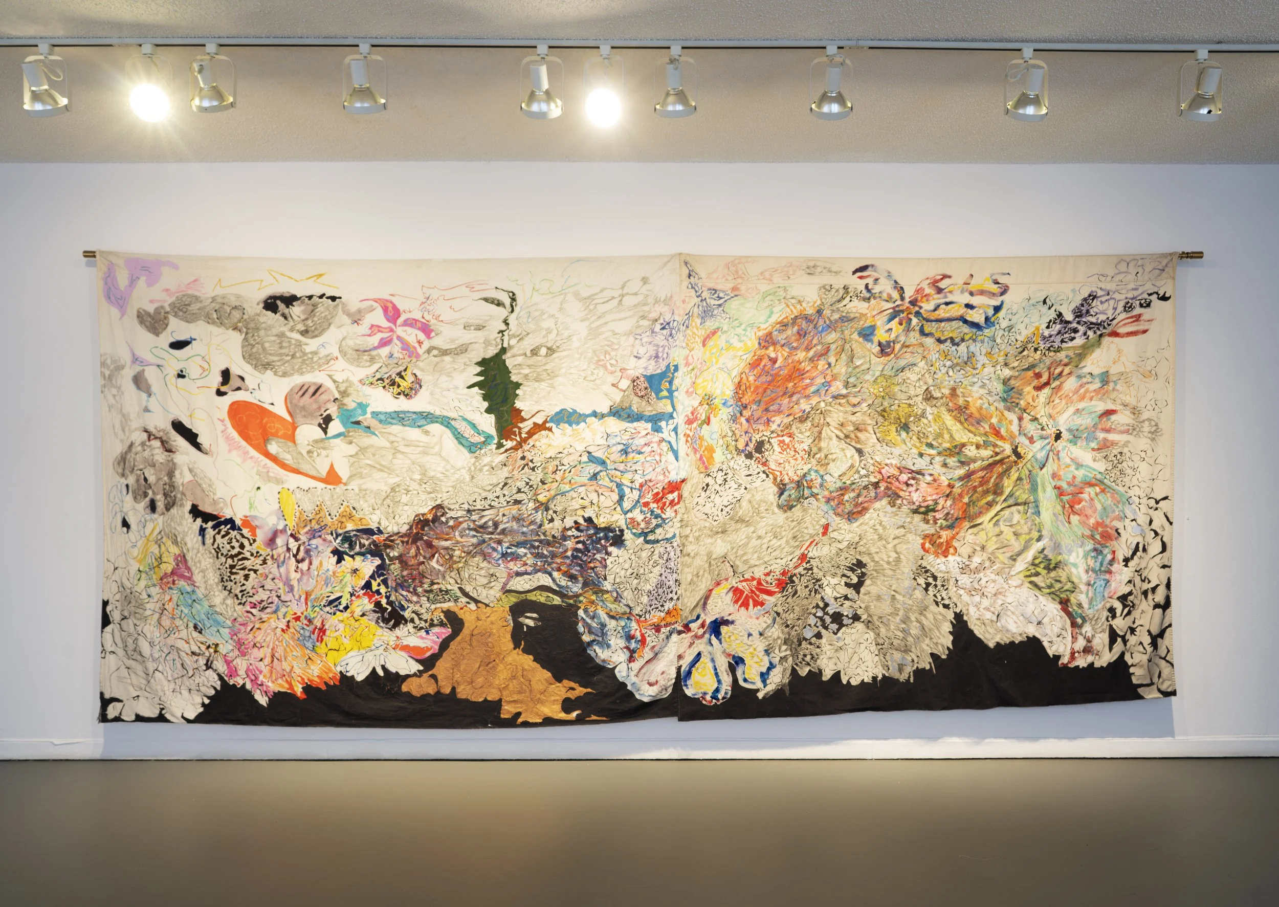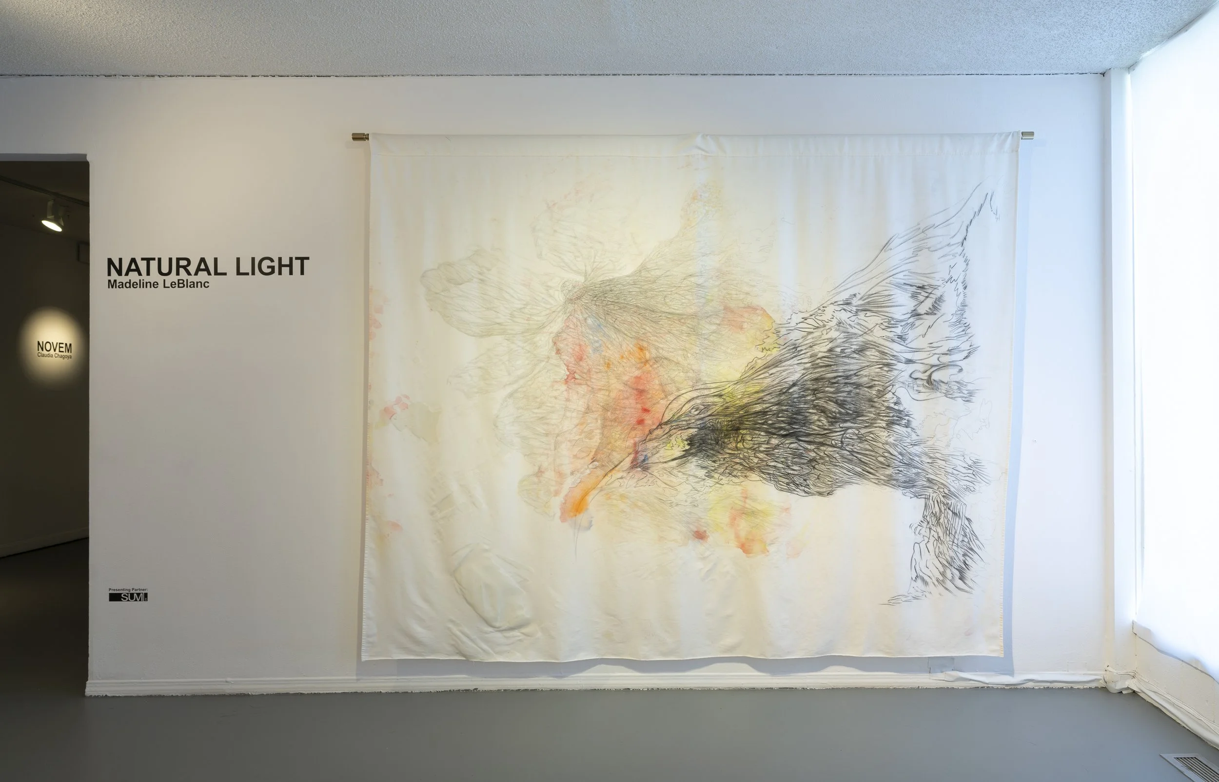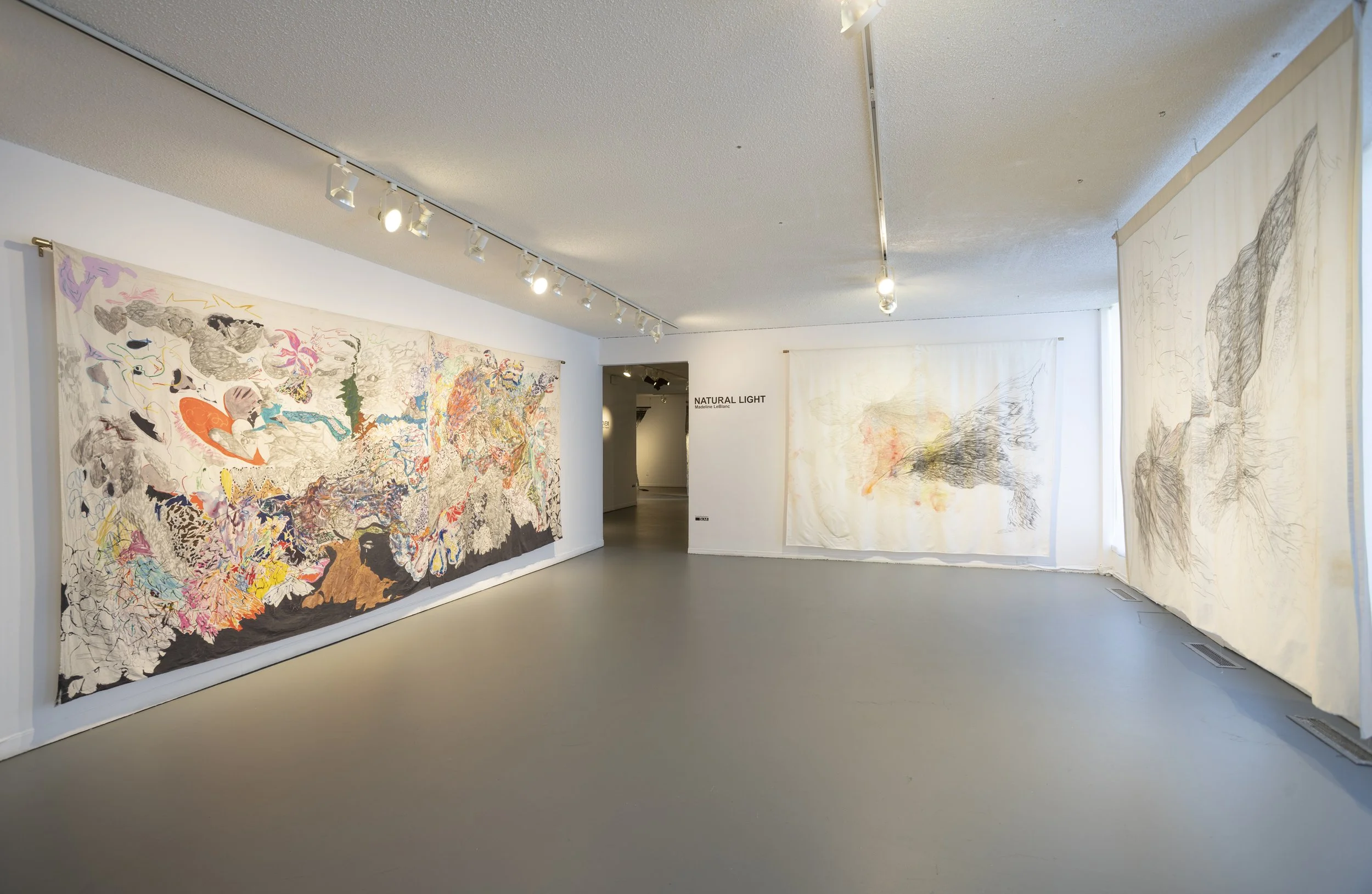 Natural Light is a body of work created during the global pandemic of 2021 and 2022, a period marked by profound isolation and extreme poverty for the artist. With no adequate financial resources for daily sustenance or traditional art supplies, LeBlanc turned to thrifted bedsheets and simple Crayola wax crayons and pencil — tools born from necessity rather than choice. In the face of hardship, LeBlanc sought to transform personal struggle into something conceptually compelling and visually stimulating. The resulting pieces feature fairies and floral motifs, serving as both a form of escapism and an act of resistance against the harsh realities of daily survival. Each drawing is infused with a longing for light, hope, and the possibility of a life beyond poverty.